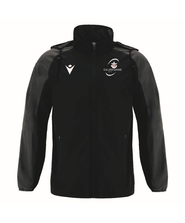 This jacket is crafted from water-resistant fabric with a mesh lining, making it both waterproof and breathable. It features a full-length reversed central nylon zip with an auto-locking slider, along with zippered side pockets. The hood is conveniently packed into the collar, while elasticated cuffs and a drawstring bottom ensure a comfortable, practical fit. The design is finished with tone-on-tone inserts on the sleeves. Available in Black/Grey.