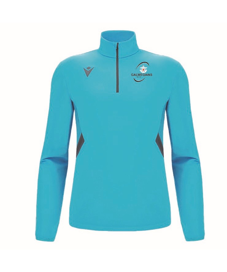 This training top is made from Polydry fabric and designed for optimal performance. It features a collar with a 1/4 nylon zip and an auto-locking slider, along with a protective neckband. For enhanced breathability, it includes micromesh inserts on the shoulders and sides. A drawstring at the bottom allows you to adjust the fit for a snug feel and full range of motion. It is available in Neon Sky/Anthracite and Black/White.